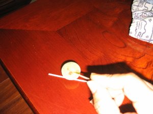上から焼酎をかけ、ビンをまわしながら焼酎を全体にまわす。