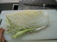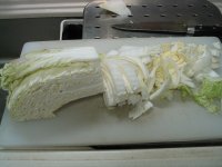 白菜は1回で食べきれる量に切り分ける(だいたい1/8サイズ)。良く洗い水を切る。(できれば1時間でも日に干す)