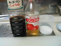 玉ねぎ1個、砂糖大1と1/2、塩小1/2、酢75cc、オイル75cc、A(みりん、酒、醤油すべて50ccで一緒に煮きってさます)
