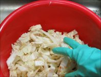 材料:白菜1/4、陳皮少々、刻み昆布少々、塩大1.、醤油大1/2~1、酢大1(この場合はりんご酢が良く合う)