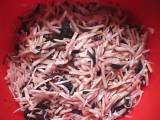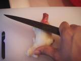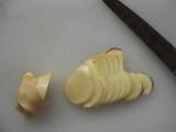 まず輪切り次にたんざくに、あまりむきになって細くしなくても良い。