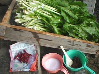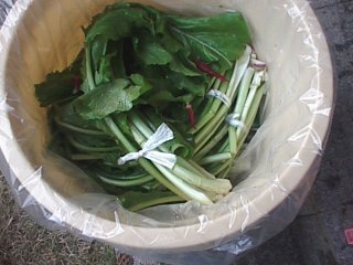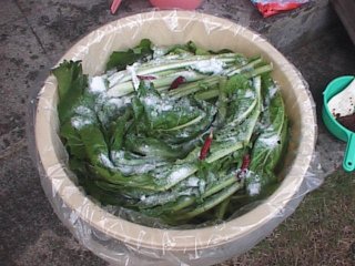 ↓材料は野沢菜5キロ、鷹の爪20本くらい、