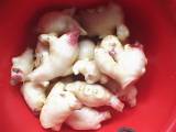 新鮮な生姜を節ごとに切って良く洗う。皮はむかないで包丁を立てて上から下へ削る。