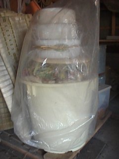 塩250g味噌1合弱 ↓樽にナイロン袋、衛生上いつも付ける。