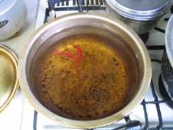 4.同じ日のうちにらっきょうの漬け汁を作っておく。上の材料を鍋に入れて煮立てる、砂糖が解けたら火を止めて冷ます。(酢、砂糖、水、塩、鷹の爪です)