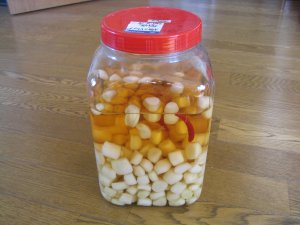 ポピュラーな日本の酢漬けですね。これももう作ったので出来上がりの写真だけでごめんなさい。写真は1キロ分で出来上がりが600グラムくらいでしょう。ビンをいくつかに分けると保存上も長持ちして衛生的です。